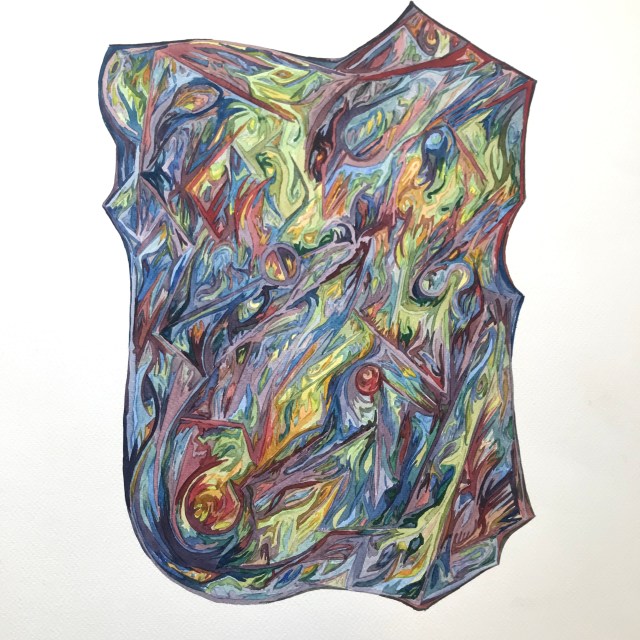 ”Ote maailmankaukkeuden anatomiasta” v.2017, akvarelli, koko40*28 cm (”A Quotation of anatomy of the Universe”)