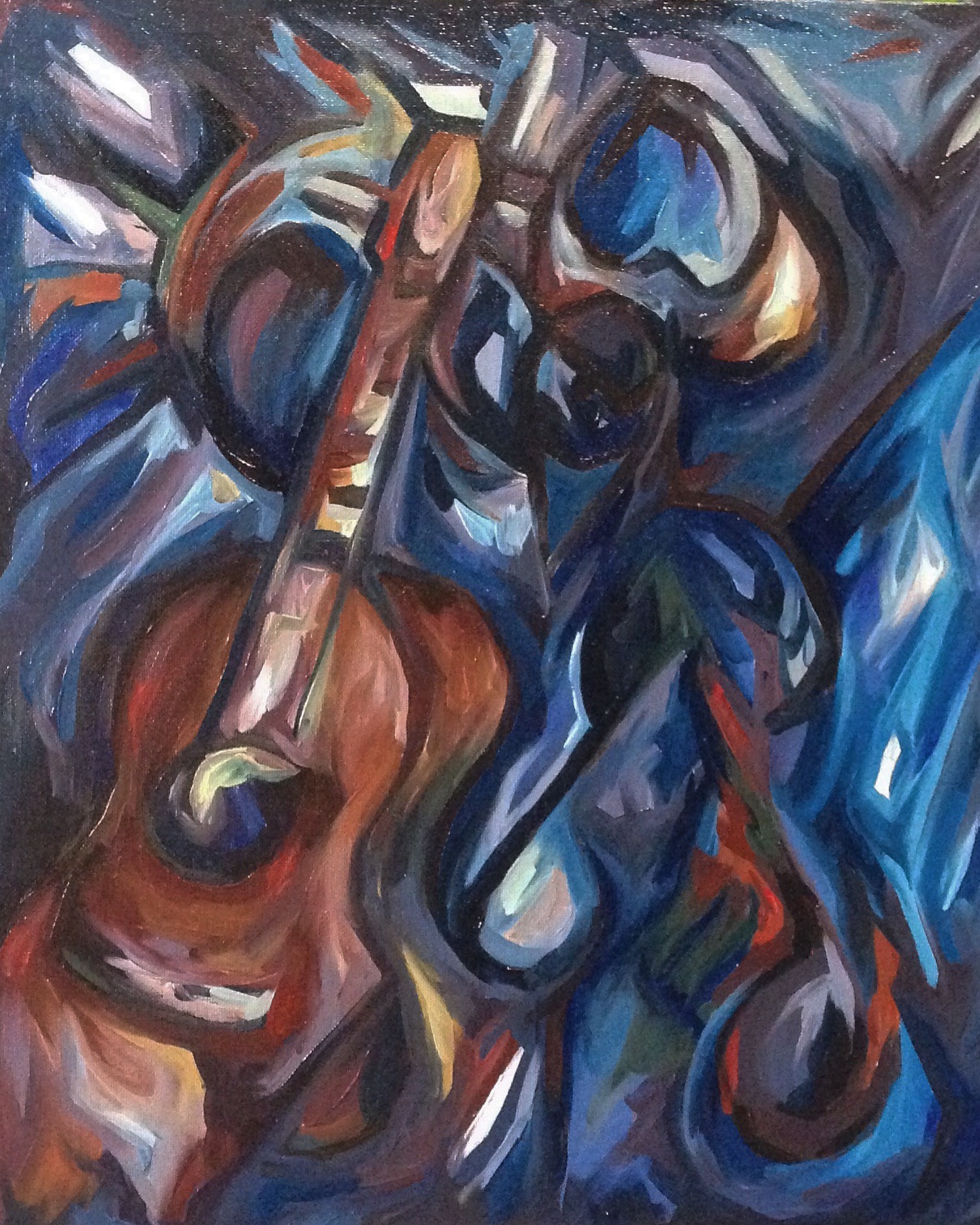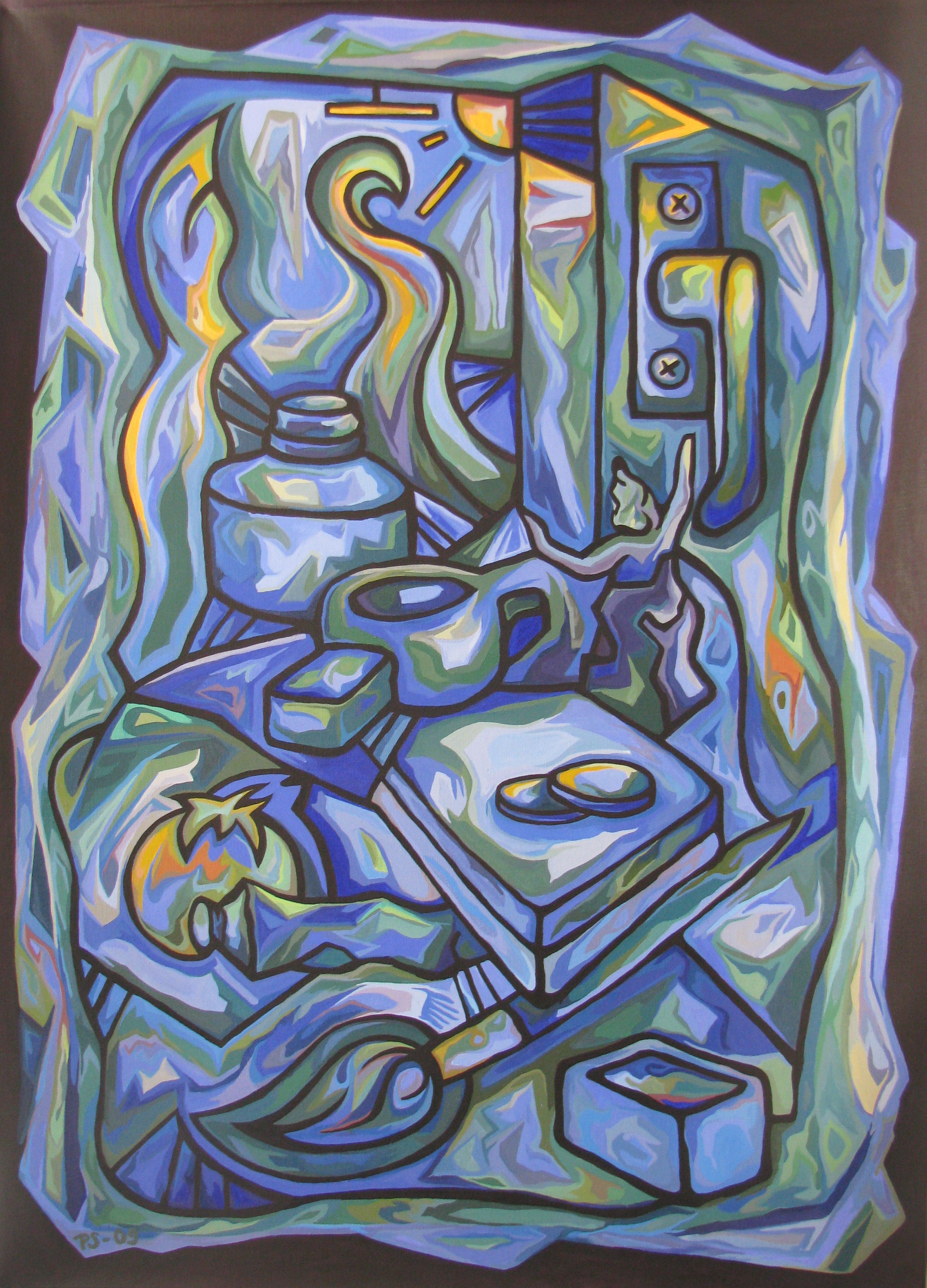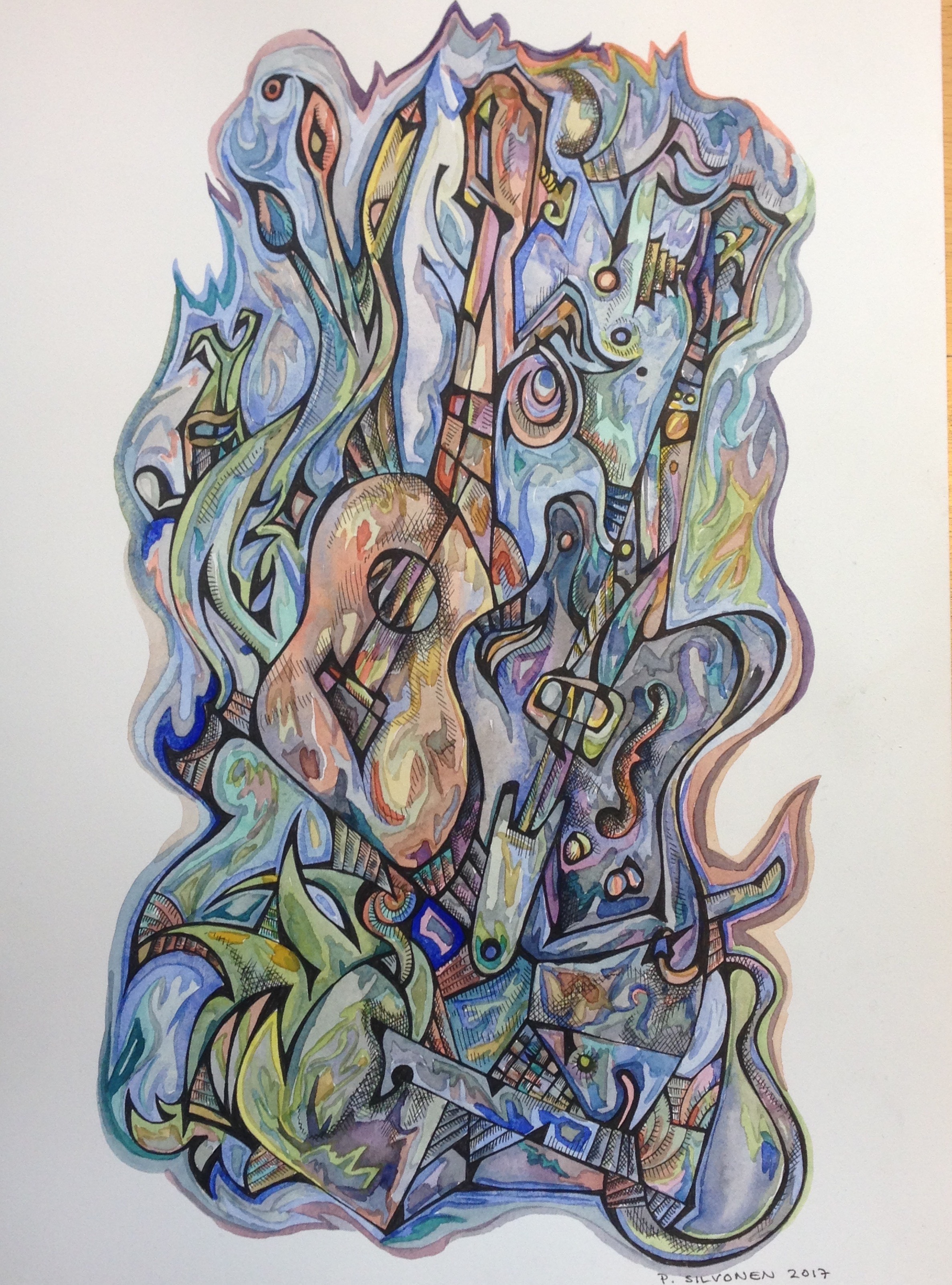”Valon säikeitä” , öljyvärimaalaus kankaalle v. 2021 koko 14 * 102 cm”Yksi pidetty lupaus arjen puristuksessa” v.2022 Öljyväri kankaalle , koko 120 * 85 cm ,(Oil on canvas)”Elämää meijerillä” v. 2009 Akryylimaali kankaalle,koko n 150 * 110 cm (Acryl on canvas) ”The Tales of Apollon” v. 2017 , akvarelli, koko 38 * 56 cm (watercolor) ”Kaksi Kitaraa” v. 2017 , Akvarelli ja tussi , koko 38 * 26 cm (watercolour and inkpen) ”Winterblues” v. 2015 Öljyväri kankaalle (Oil on canvas)